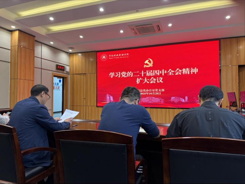 10月28日,信息化办公室党支部组织召开学习贯彻党的二十届四中全会精神扩大会议。会议由党支部书记曹克浩主持,信息化办公室全体教职工参加会议。会议围绕全会公报和《中共中央关于制定国民经济和社会发展第十五个五年规划的建议》核心内容,结合学校信息化工作实际,深入开展学习研讨,明确贯彻落实方向。